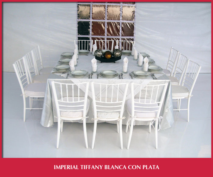 Incluye la Renta de 12 Sillas Tiffany, una Mesa Imperial con Mantel de Color y Cubre Mantel